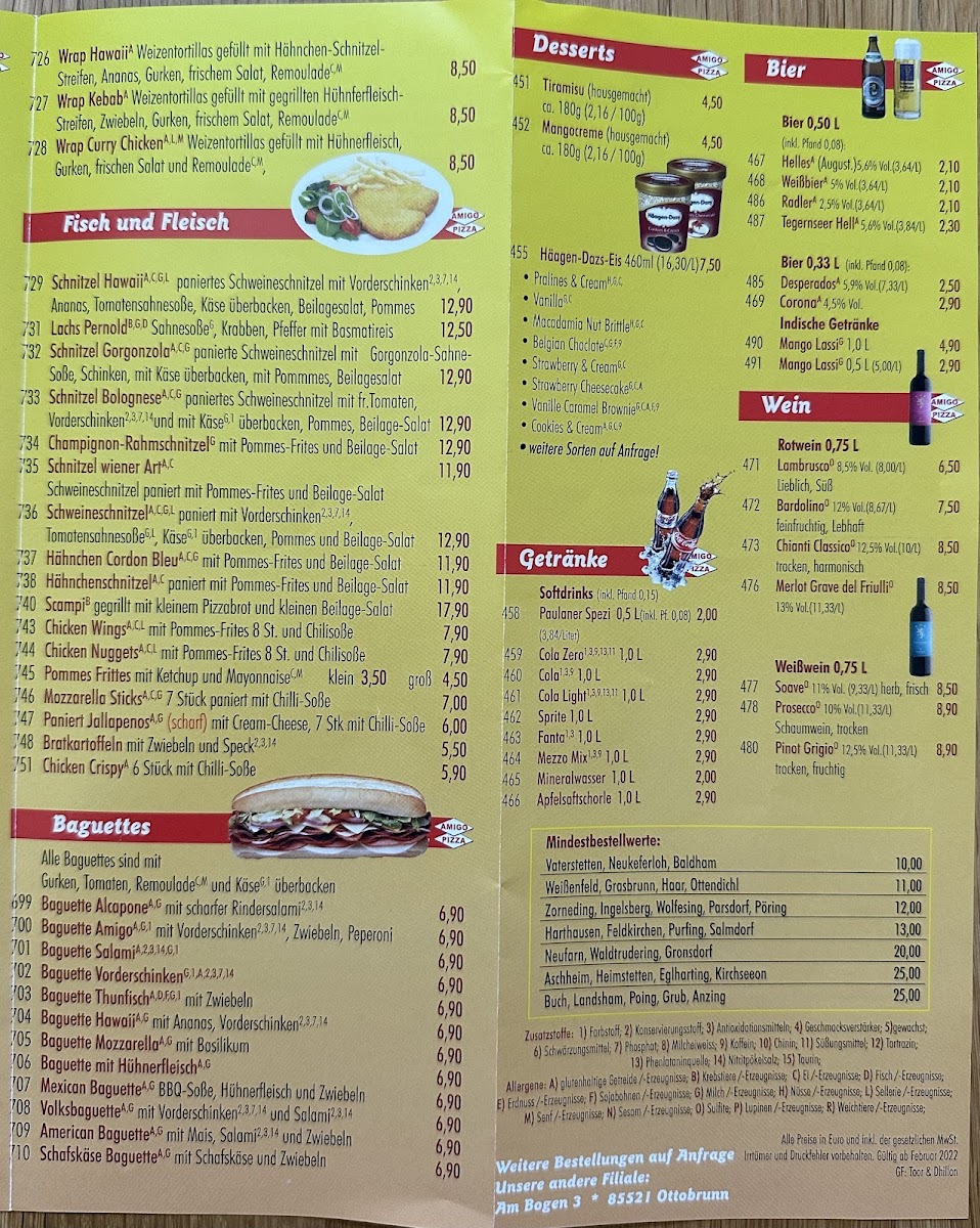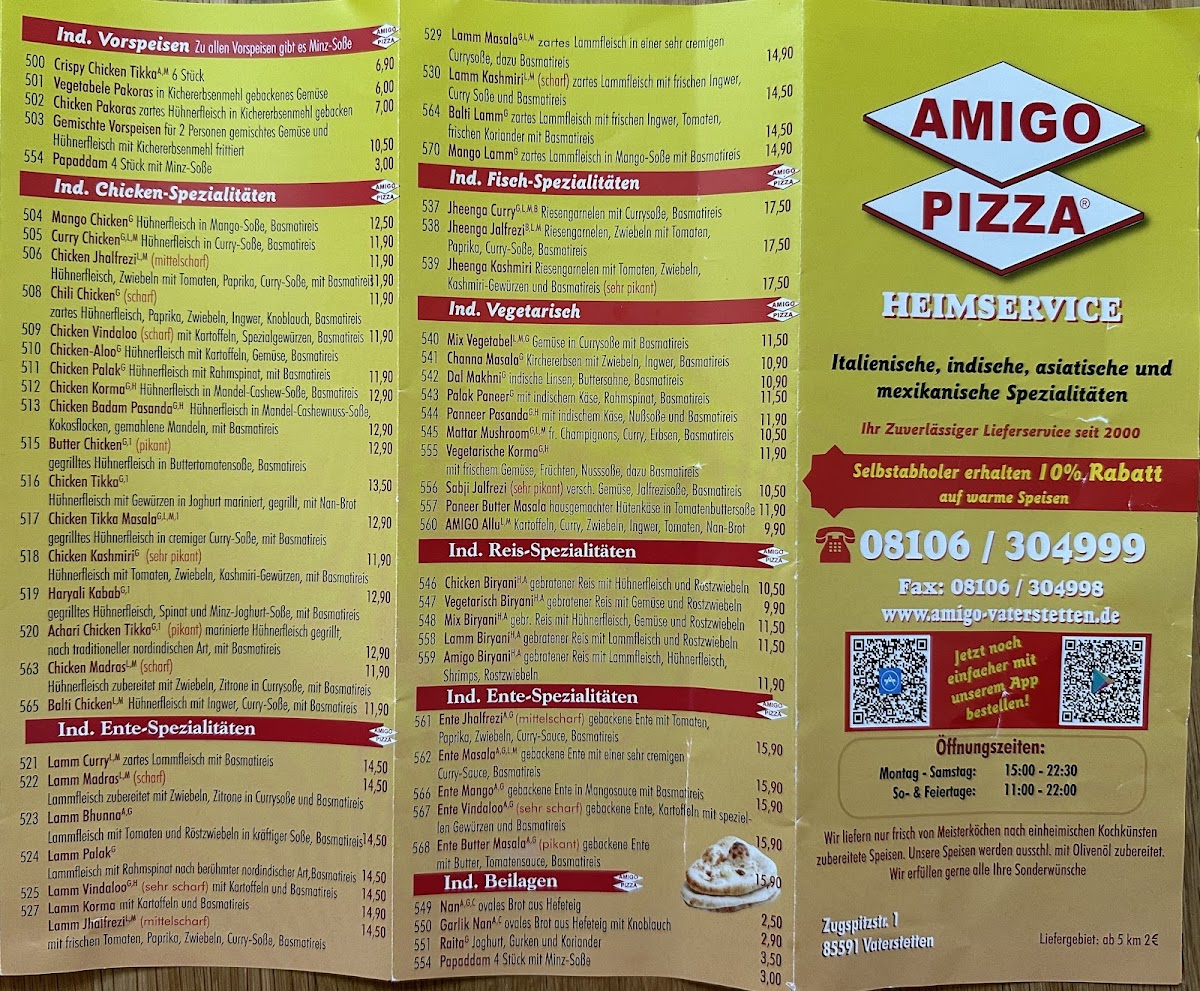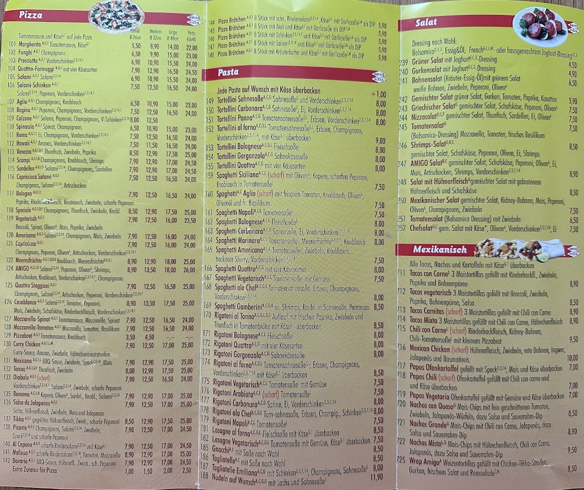 The menu at Amigo Pizza Vaterstetten reflects a clear focus on classic Italian comfort food, with pizzas and pastas forming the backbone of the offering. The pizza selection stands out for its familiar yet reliable combinations, where Margherita highlights a balanced base of tomato sauce and melted cheese, while Salami Pizza and Prosciutto Pizza deliver bolder, savory flavors without feeling overloaded. For guests who prefer something richer, specialty options with mixed toppings provide a satisfying, hearty experience that stays true to traditional pizzeria style.